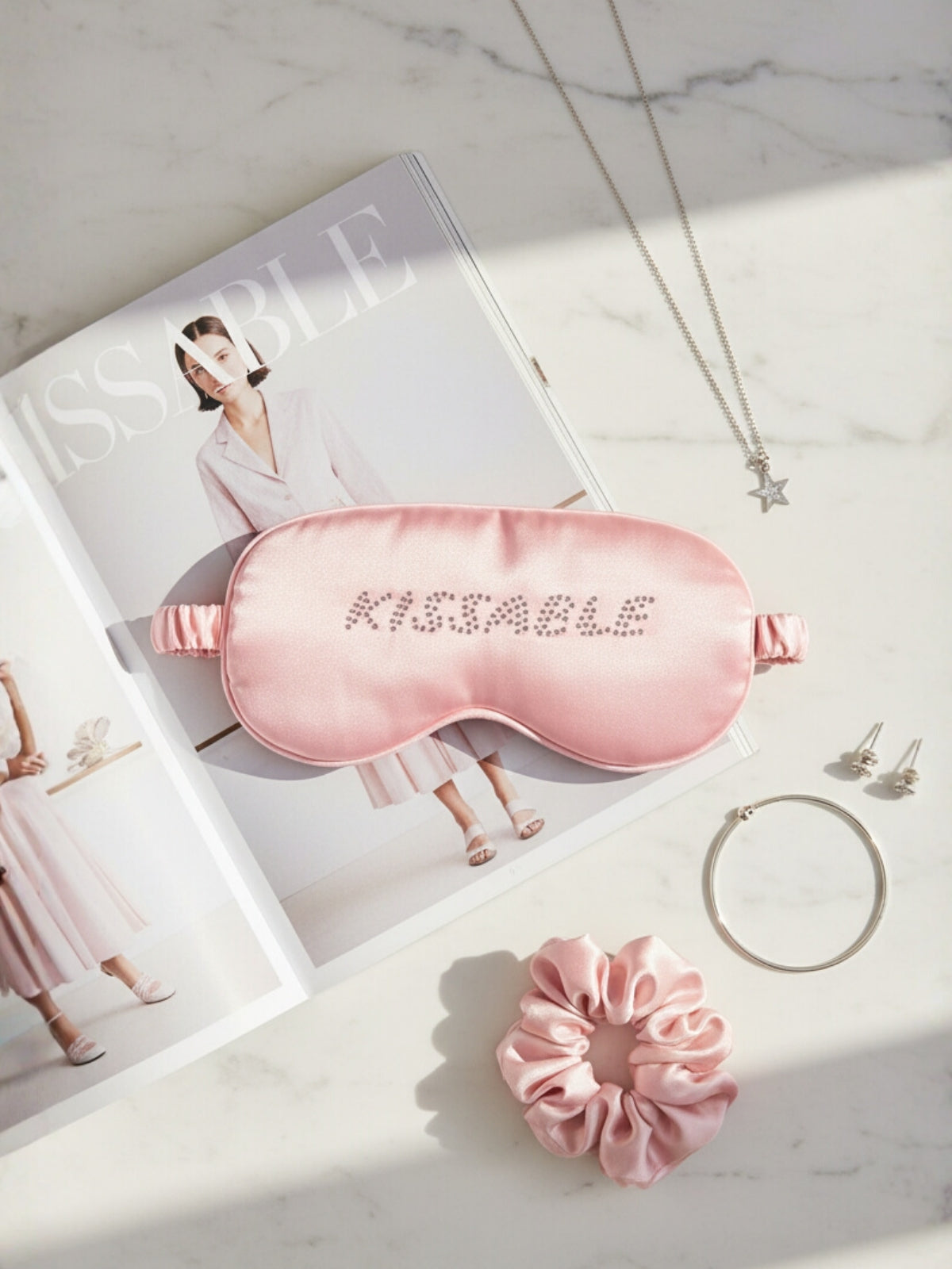 Our Kissable Rhinestone Sleep Mask is made for beauty sleep that actually looks beautiful. Designed with plush satin and sparkling rhinestone details, it blocks out light while keeping your skin smooth, crease-free, and ready for your morning glow.